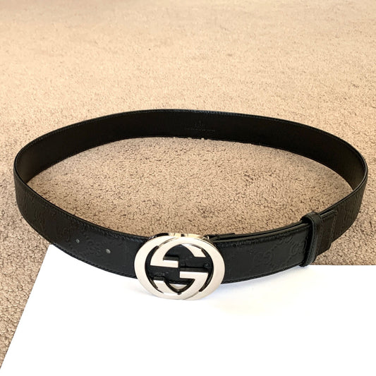 G1036 Gucci unisex signature monogram black leather belt size 100 cm 40 inch